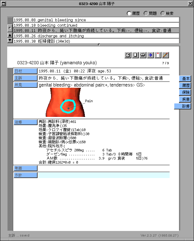 このように省力化が進むと、患者の訴えを長文でキーボード入力する場合など、むしろ「充実感」さえ感ずるようになるのは予想外の効果であった。このような現象が現れた時、電子カルテは実用段階に入ったと言って良いであろう。