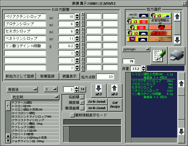 ・ 科によっての違いはあるものの、特に外来診療においては、2/3以上の患者さんの処理は特殊なものはなく、同じ経路をたどるものが多い。プログラム上、色々なチェックの為にユーザに質問をだすことがあるが、同じ経路の場合はそれを省略できる。省略してある方をメインにして特殊な場合を例外処理とするようにプログラム設計を考慮する。これによっても外来での、キーボード、マウスのイベントは激減する。
