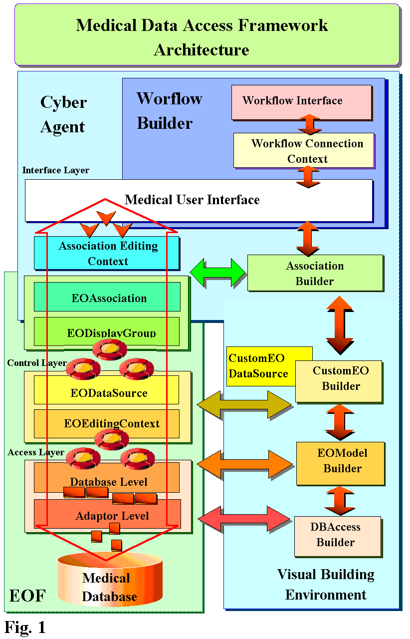 オブジェクト指向プログラミングのカプセル化や継承性は、医療情報システムの開発性、保守性の著しい向上を約束しており、またEOF[2]技術は将来の増大する情報量に対して既存のデータベースをそのまま利用できる可能性を示している。しかしながら、オブジェクト指向を含むこれまでのソフトウェア技術では、コーディングレベルの専門的な言語知識やデータアクセスのための特殊な言語を駆使しなければ、新しいパラダイムに浴することはできない[3]。最近話題のJAVAといえどもその領域からは出ていない。
