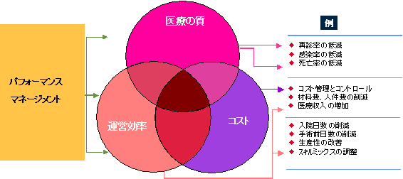 これからの医療財政破綻の時代において、病院経営にとってのチャレンジは、限られた財源の中から如何にして最高の医療を提供することが出来るかである。このチャレンジに応えられる病院だけが生き残っていく時代が来る。図2で示されているように、病院の総合的なパフォーマンスとは提供する医療の質、運営効率、そしてコストの3つの視点から評価されなければならない。