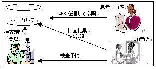開業医から検査センターへの検査予約、検査の結果参照をオンラインで行うことにより患者に対するサービス向上を検証する。検査結果が開業医の手元に届くまでの時間短縮と、患者が検査結果を参照できることによる医療に対する意識改革が期待できる。