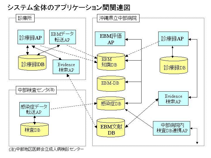 2.2.当院と診療所の電子カルテ情報を集積する「EBMサーバ」を構築し、蓄積された診療情報に対し、内容がEBM的評価基準(治療ガイドラインなど)に照らして適正かを調べるフィルタ(EBMエンジン)を構築する。エンジンによる評価結果は当院のEBM専門家がそれをレビューし、診療所での診療状況のレビューを行なう。そのためのEBM評価エンジンおよび「EBMサーバ」を開発する。