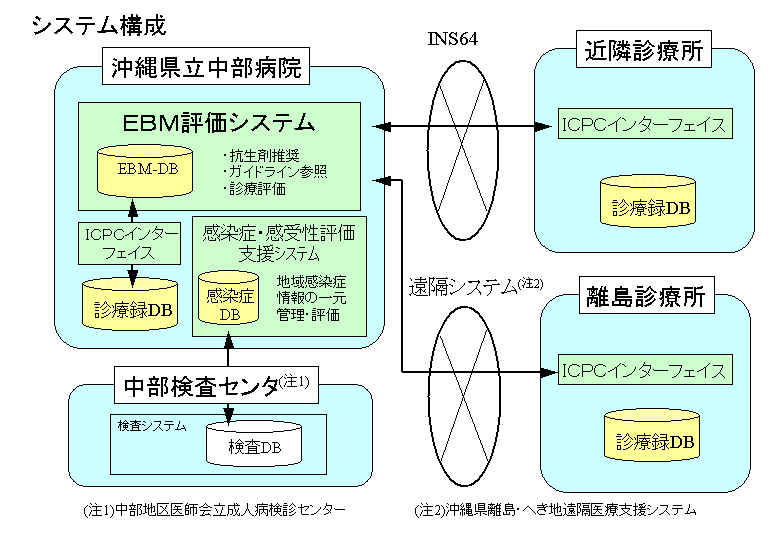 1.2.3.上記のシステムと、当院感染症データベース、および中部地区医師会立成人病検診センターの感染症データベースを連携し、得られる情報から個別の患者の抗生剤使用に関する適正性の評価、および、地域の感染症の動向・菌種・感受性の動向についてのデータ公開の可能性を検討する。