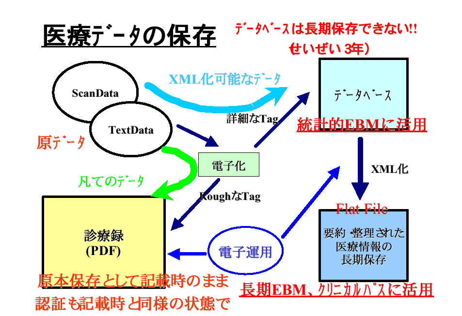 一方、患者にとっての直接のメリットとは何だろうかと考えるに、この判断は非常に難しい。決まり文句としての「インフォームドコンセントの向上」や「情報開示の容易さ」はあるにはあるがそれ自体がが電子化の理由付けになるほどの正当性は持っていないと考える。上記の問題において電子化はそのtriggerにはなり得るが本質的にはその医療機関の「体制や方針」を問われているのである。逆に電子化に不慣れの為に診療効率が落ちれば患者にとってデメリットであるし、電子化に大きな予算を費やして医療機器のスペック低下にでも繋がればたちまち直接的デメリットとなる。従って患者のメリットを前面に電子化を語る事には無理がある。