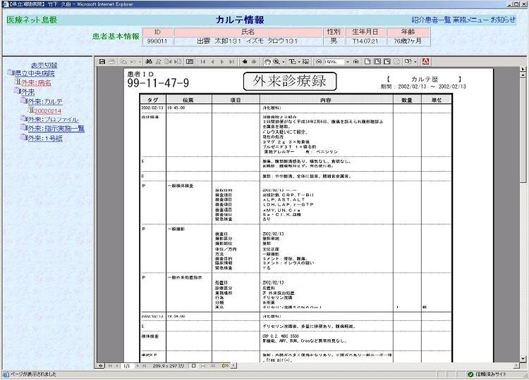 1) 地域医療情報ネットワーク管理システム(隠岐病院、島根県立中央病院)