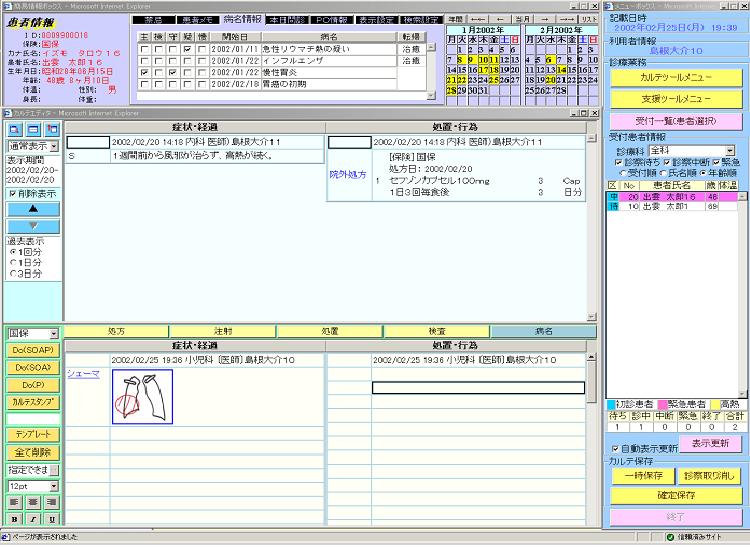 【カルテエディタ、過去カルテ、メニューボックス、患者簡易情報ボックス】