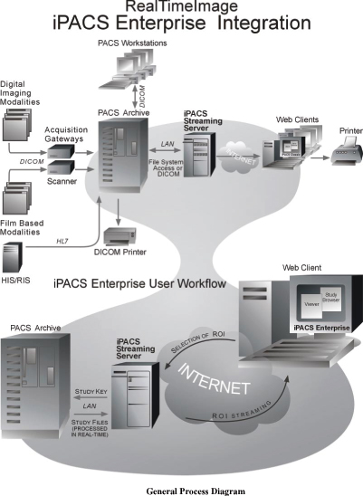 ストリーミング技術により、iPACSエンタープライズのユーザーは、標準装備のPC、ネットワーク接続、ウェブブラウザを使い、病院内の放射線科内で放射線医師や技師達が使用しているのとほとんど同じ画像診断、参照の環境で仕事をすることができます。
