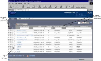 iPACSエンタープライズスタディブラウザは、認可された検査画像からユーザーが閲覧画像を選択するのに必要な情報を提供します。スタディブラウザから、検査画像の詳細を確認でき、又画像に添付されているレポートを読んだり、追加したりすることもできます。また、別ウィンドウで開いたiPACSエンタープライズビューワを使って、検査画像を表示することができます。