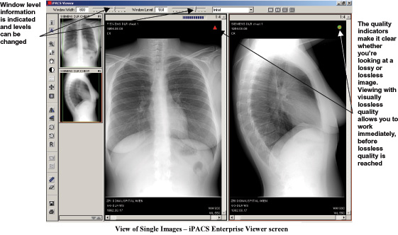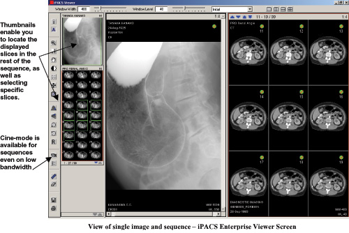 画像保管してある放射線部門から離れていて(病院内外)、緊急に必要な検査画像をロスレスの画質で必要としている医師に対して、iPACSは最もそのニーズに応えられる優れたソリューションです。先進的なストリーミング技術で診断部分(ROI)をロスレスレベルにまで画質を上げながら診断、参照を進めていくことを可能にしました。iPACSエンタープライズは、病院内外における検査画像と情報を、よりフレキシブルで、より多目的で、より効率的に活用できるようにした、かつ低価格化で導入をより実用的なものにしたインターネット、イントラネット利用の医療画像ソリューションです。