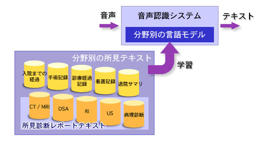 株式会社アドバンスト・メディアは電子カルテに特化した音声認識システム「AmiVoice Medical」の開発を進めています。2001年10月より放射線科画像診断に特化した音声認識システム「AmiVoice Medical for Radiology」、病理診断に特化した「AmiVoice Medical for Pathology」の販売を開始し、2002年4月時点での導入稼動施設は15ヶ所となり我が国でも音声認識を利用した医療レポートの作成が本格的に始まりつつあります。