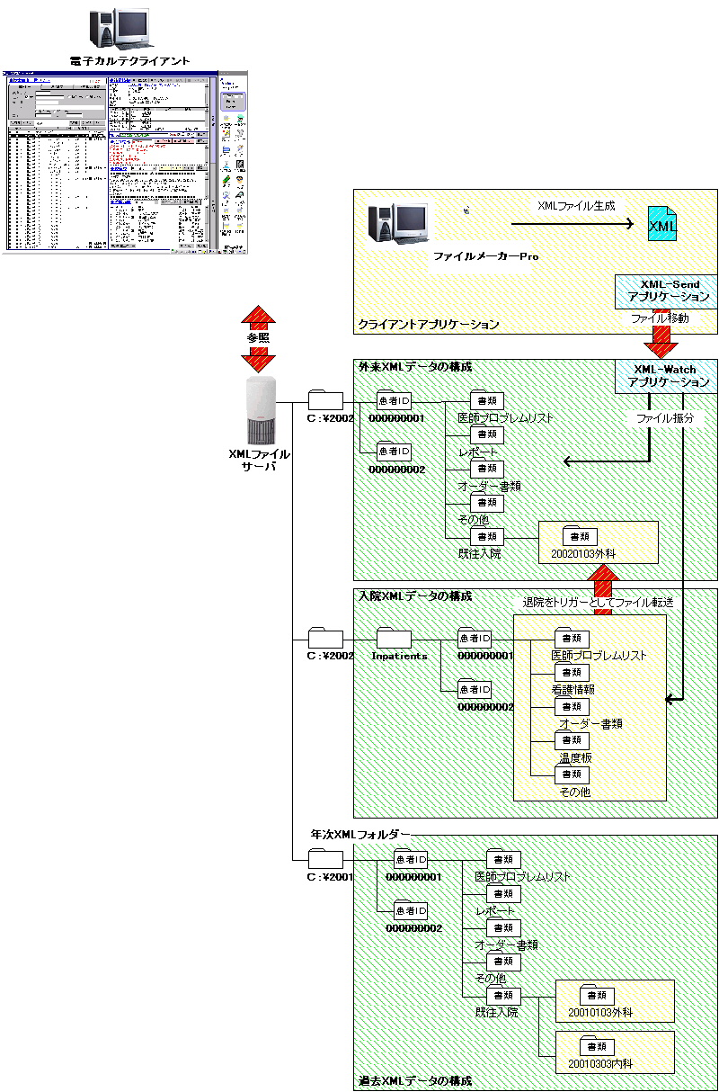 移動したXMLファイルの中身を電子カルテから参照したり,Webで見せたりすることが可能になっている.