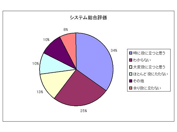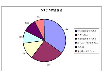 期間が短いために現段階においての医師の総合評価では、役立つと答えた施設が約半数であり、不明とするものが25%で今後の利用が期待されている。