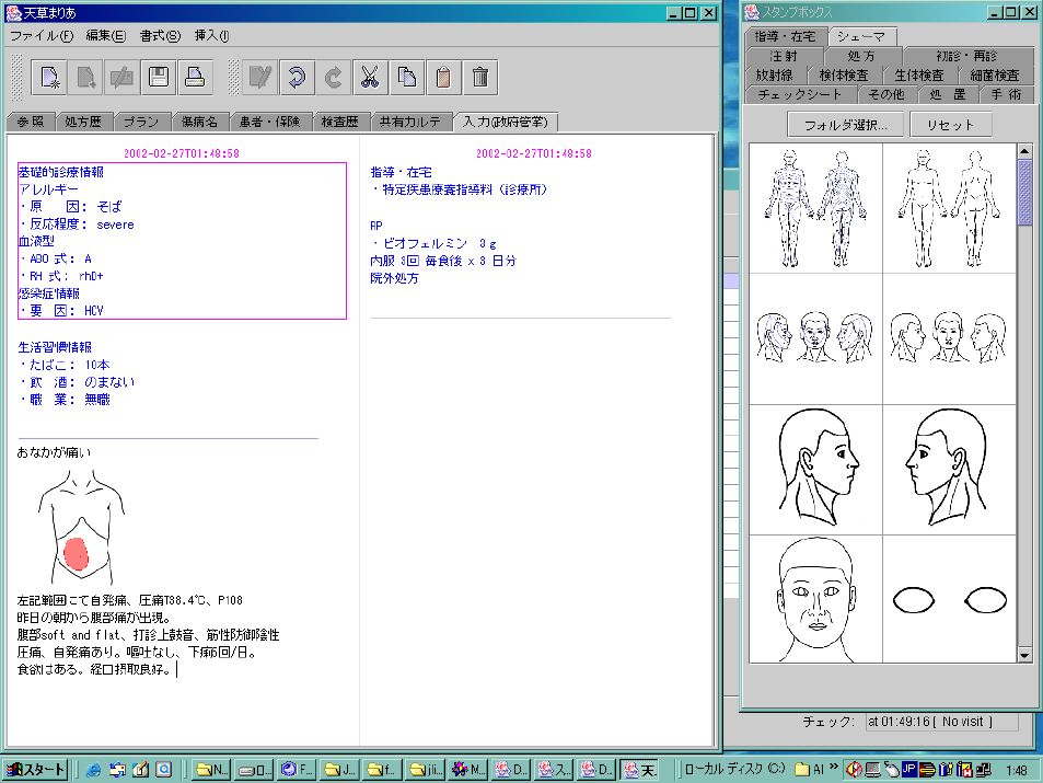 サーバはLinux上で動くOpenLDAP、クライアントはWindows上で動くJAVAベースアプリケーション。機能はカルテの記載とオーダー(処方、検査など)、予約など。