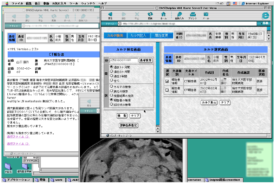 eDolphinでは、カルテの記載機能、オーダー発行機能、レセコン連携機能、センターとの通信機能など、当初の設計通りに稼働した。特に、レセコンとの連携は実務上大変重要な意味を持つが、これもほぼ実用レベルに達しており、現在、特に大きな問題は生じていないが、クリニックのユーザーからのアンケート結果によると、地域連携サーバの参照時、処方、検査などのオーダーの際などのレスポンス、オーダーの使い勝手など、改良の余地が多々あることが判明したので、平成14年度の事業計画の中でブラッシュアップを行った。すでに宮崎地域では最新版のインストールが終了し、熊本地域でも5月にアップデートの予定である。