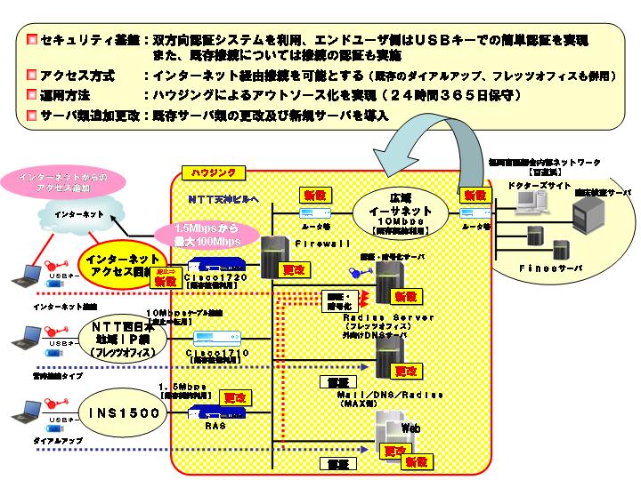 また、接続に関しては、認証サーバによりアクセス管理をすること。- 新たに、インターネットからのアクセスを可能とすること。