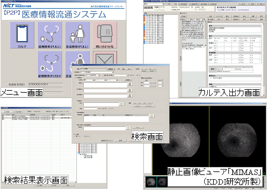 眼科カルテや画像を登録・検索・表示するためのアプリケーションソフトを開発した(図3).実証実験では,眼科医がこのソフトを用いてカルテデータの登録や検索・取得を行った.